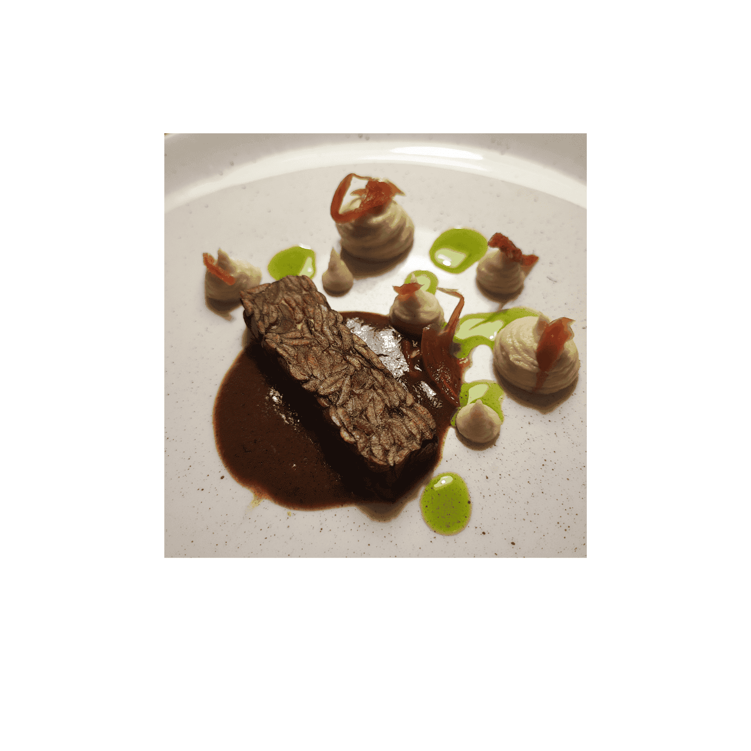 Tempeh fatto in casa, salsa vegana, purè di sedano e cavolo rosso fermentato (vegano)